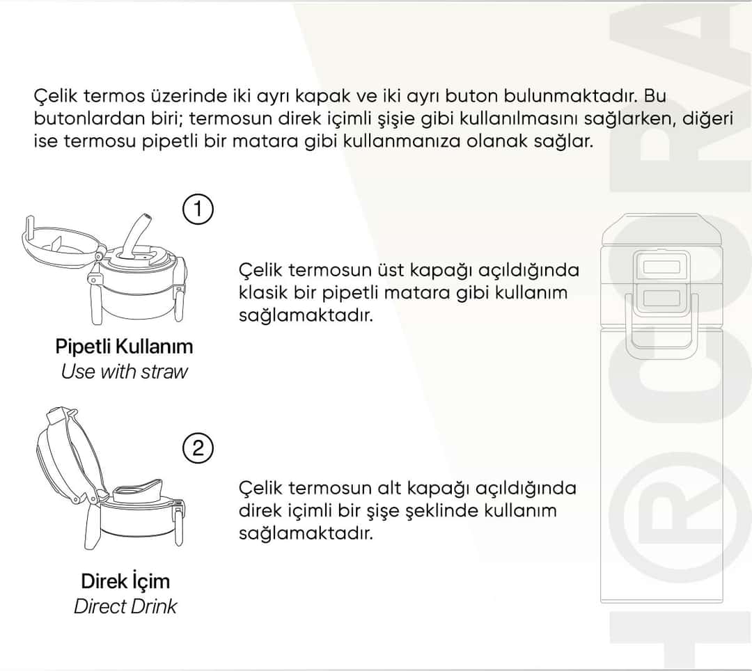 Coral High Kids Lavanta Pembe Flamingo Desenli Pipetli ve Direkt İçim Çelik Termos 500 ml